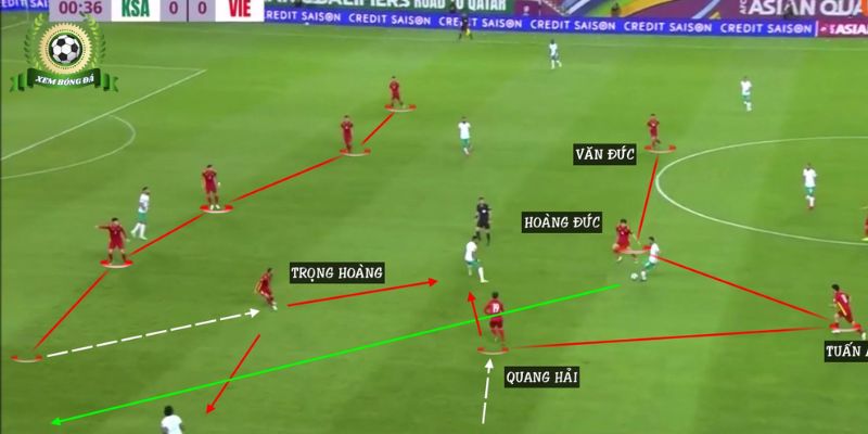 Điều này tạo ra một vòng lặp áp lực khủng khiếp khiến đối thủ không thể dâng lên và buộc phải co cụm phòng ngự. Sự nhịp nhàng trong cách tịnh tiến bóng chính là biểu hiện rõ nét nhất của một đội bóng đẳng cấp thế giới đang vận hành sơ đồ dâng cao.